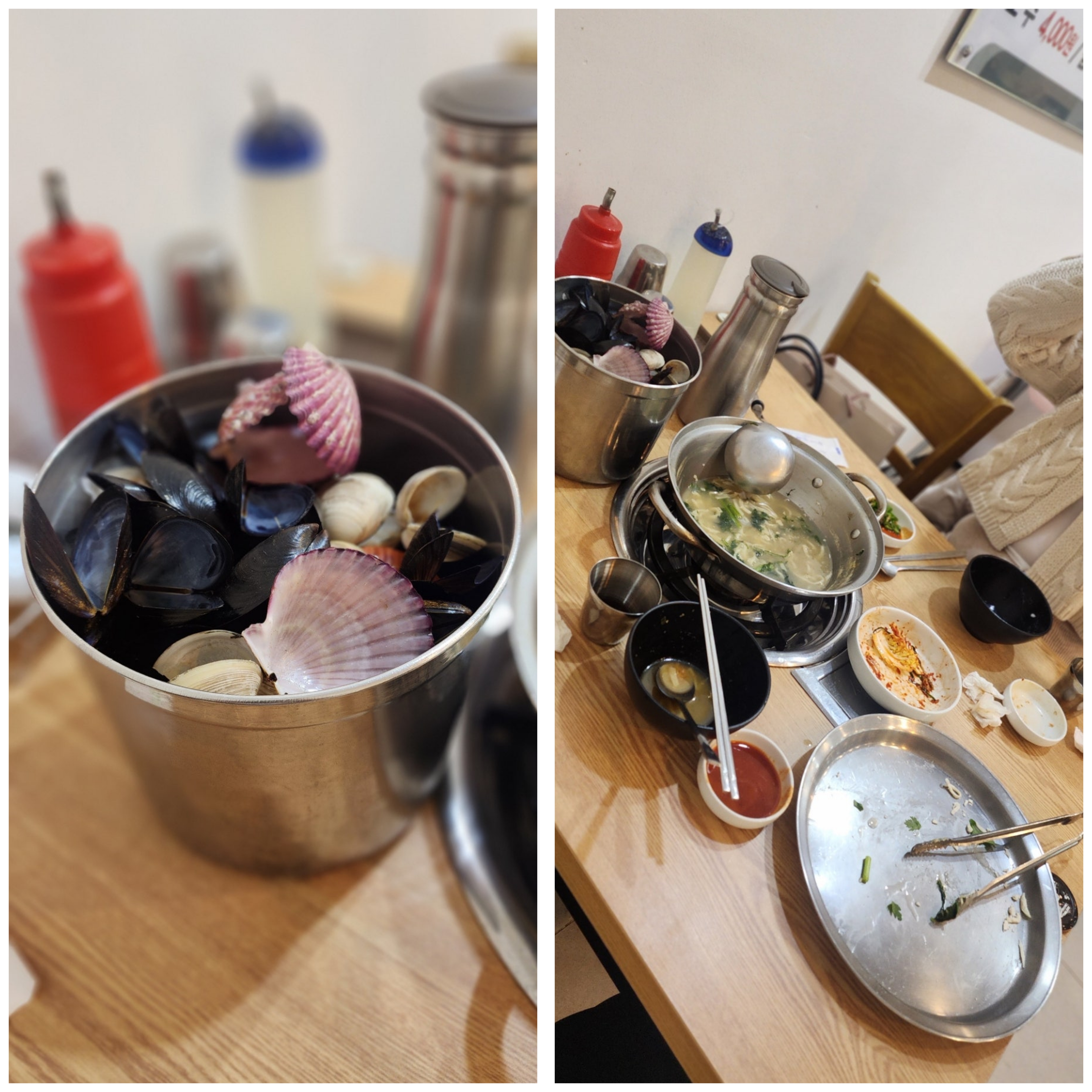 가득찬 조개 껍데기들과 완밥 한 저희의 자리ㅋㅋㅋ