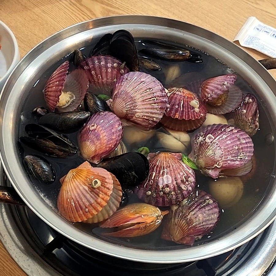 가리비 말고도 홍합 이랑 조개도 함께 냄비 가득 들어있는데. 씨알이 어찌나 좋던지 칼국수 먹기 전에 배가 부르더라구요??