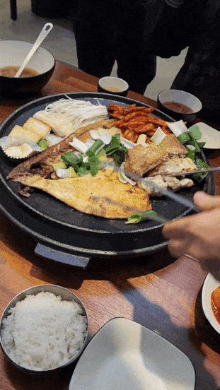 솥뚜껑에 맛있게 구워나오는 생선구이 맛집인
